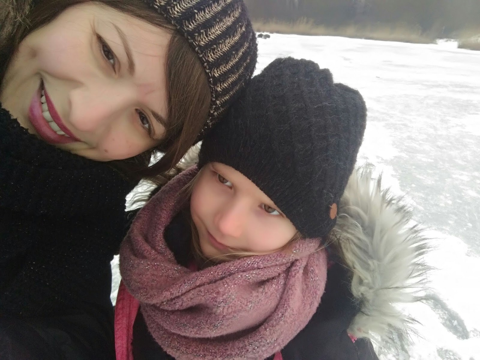 Aztán korcsolyáztunk egy kicsit a Naplás tavon is, Viola mérges volt, hogy ilyen veszélyes helyzetbe visszük, de legalább 30 cm vastag volt a jég és rengetegen voltak. Amúgy tudhatná, ha én rá merek menni, akkor tuti rendben van.